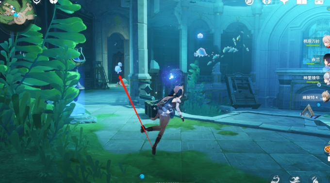 4.潜下去,然后抬头看就可以看见一条废墟的路,往那里游过去