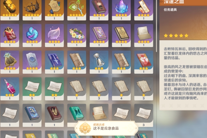 以上就是《原神》蒙德隐藏成就这不是应急食品解锁条件的所有内容了,想了解更多相关资讯攻略可前往《原神》专区查看。