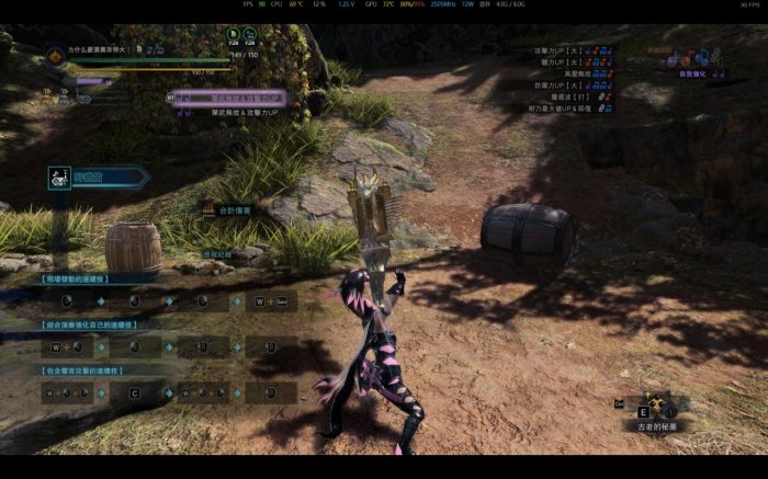 狩猎笛动作特点:在连携态中,相同动作不能连续使用;音色攻击和响音攻击会储存音色(最多4个)并构成旋律(最多3个),显示在左上角;除柄击外,都是打击类攻击,击中头部可以积累昏厥值。