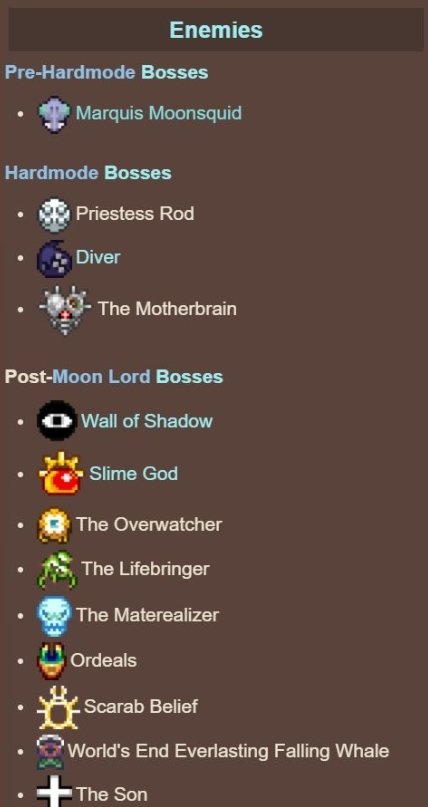 类似灾厄的深渊地形,在地图一侧会生成巨大深水区域,需要佩戴相应饰品进行探索。该地形有自己的特殊敌怪,需要小心处理。
