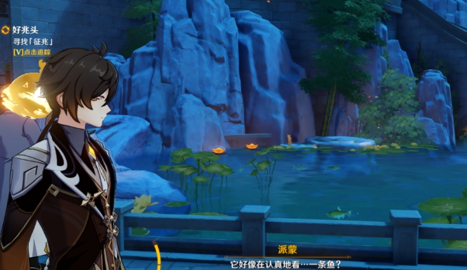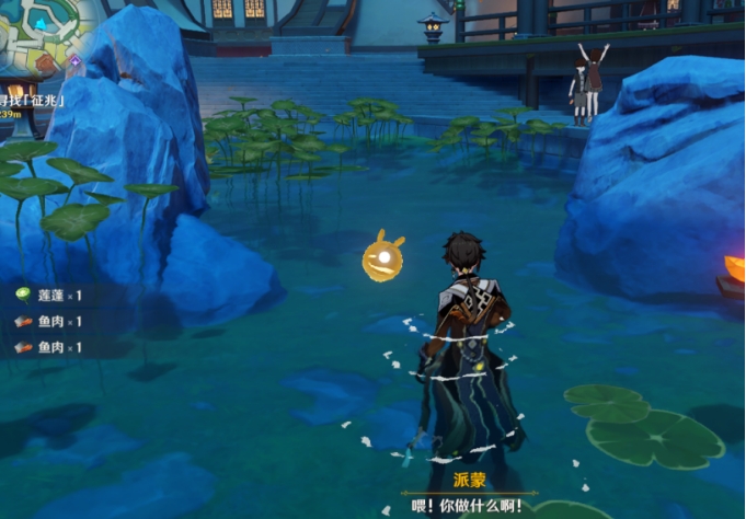 需要把这里的鱼全部抓完,会触发派蒙的对话