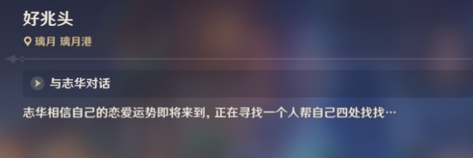 把每日任务的地方切换成璃月,等每日任务刷到了好兆头,起码需要完成二次这个每日任务才可以。需要杀鸽子,吹树叶、抓鱼、赶小狗这四个各完成一遍即可获得成就。
