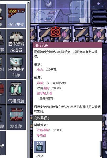 除火箭本体配件外还有两个东西,一个是通行支架,俗称龙门架,是建造火箭时必不可少的东西,功能就是类似脚手架。