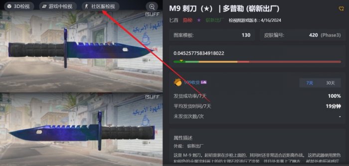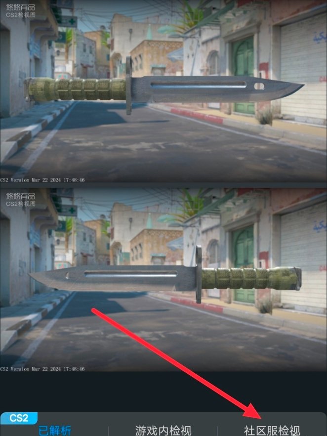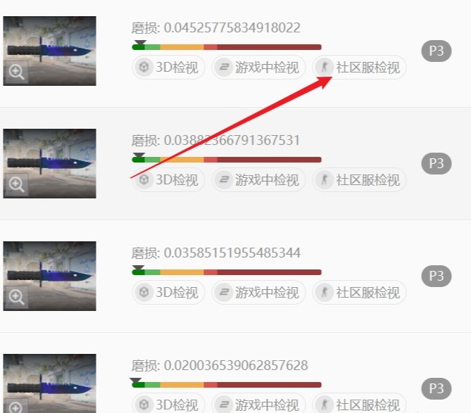 这里以op刺刀为例,点进饰品主页,然后点击“社区服检视”即可。