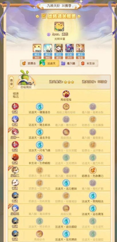 这里拿满法连天全部技能,而且战将四的技能将被继承到无双,有神兽法或者单法都会打得比较快,即便四吸收群法其实压力也并不大。