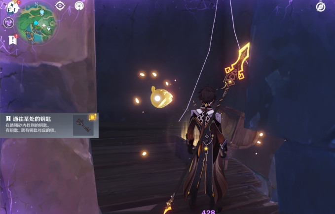 下来后稍微往前面走一点,往东方向看,可以看见一个普通宝箱