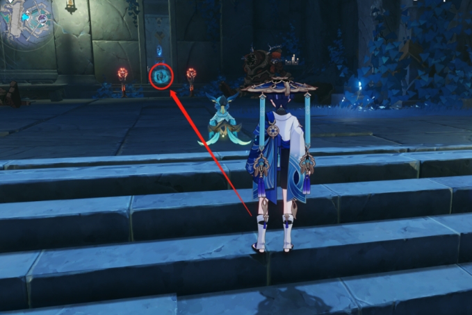 下去一层后,再往东方向走,触碰一下蓝色的传送点,就会直接传送到最上面