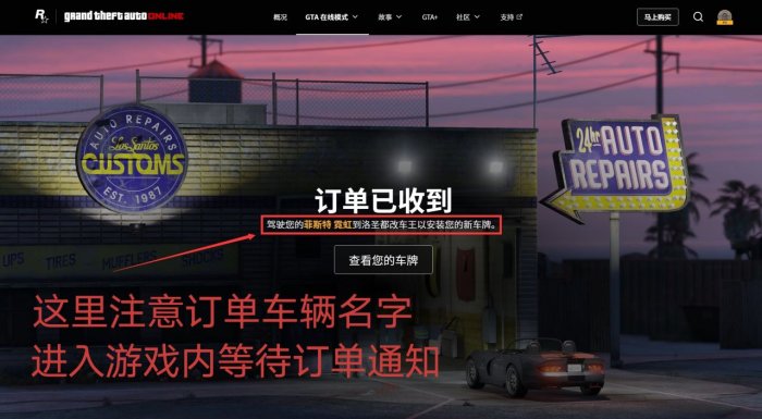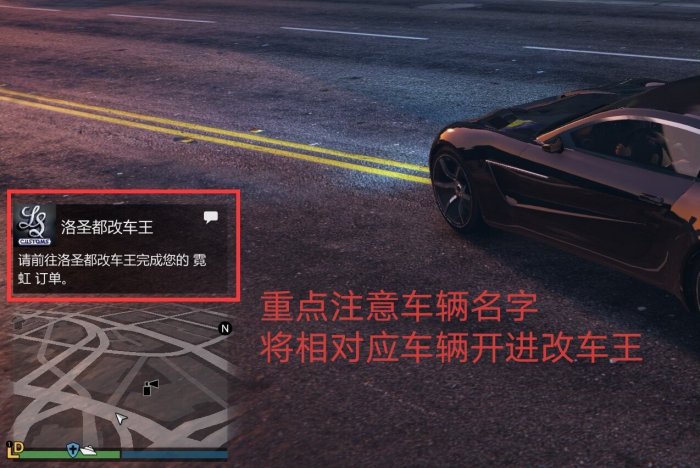 注意此通知里的车辆名字,将车辆开进[洛圣都改车王]