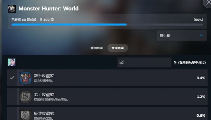 同样的还有“老手收藏家” 任意一个地图上的全部宝物,全球成就完成率1.2%(steam端)。