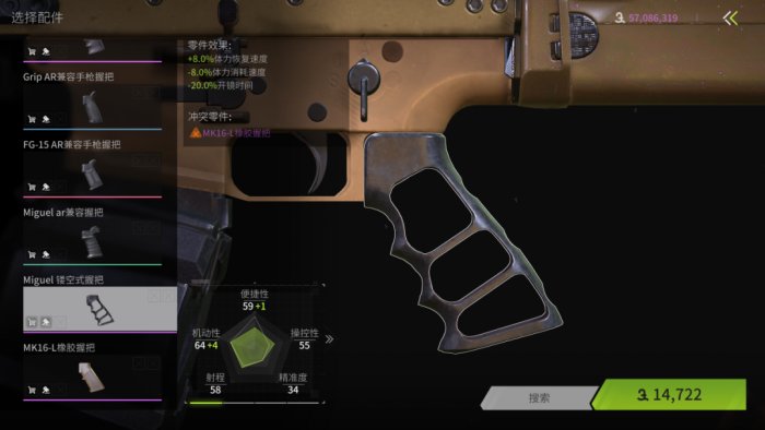 握把能增强我们的体力和开镜时间,为我们的枪械提供了可观的机动性,不管是转点还是近战钢枪,都能享受到它带来的体力消耗和开镜时间的减少。