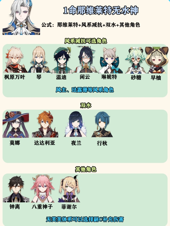 1命那维莱特没有水神:那维莱特+风系减抗+双水+其他角色