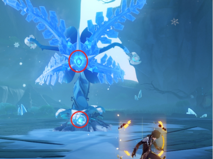 急冻树有两个弱点,第一个就是在花冠上面,第二个就是花根的地方