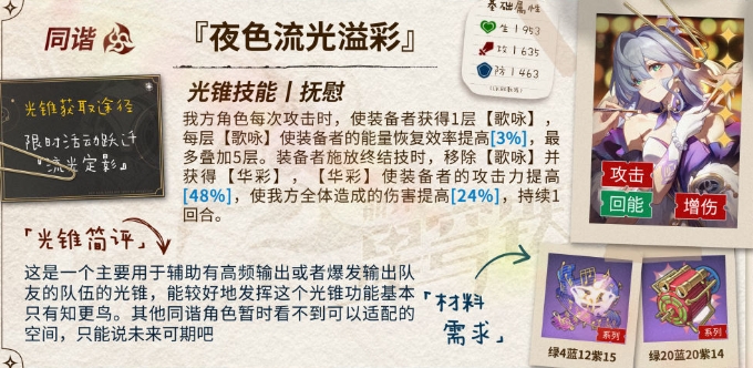 这个光锥基本只有知更鸟能用,并且只有高频输出或者爆发输出的队友能较好地发挥这个光锥的功能。其他同谐自己不打输出的话都不建议使用。