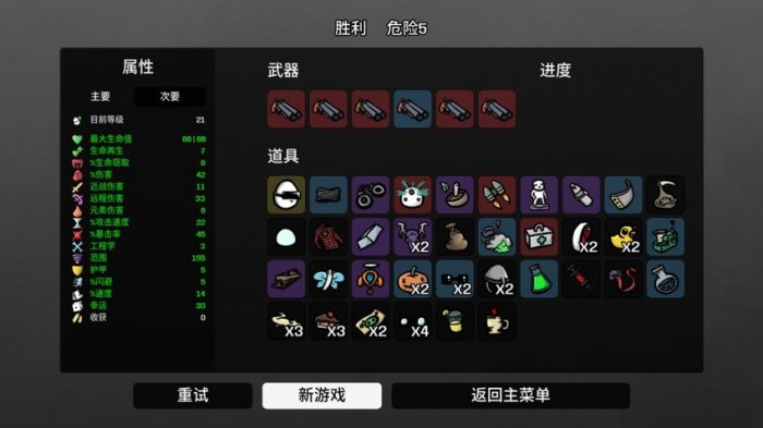 并不是很符合土豆兄弟这款游戏的总体思路,毕竟越到后期怪越多,站桩爽是爽,但17波之后就容易暴毙。