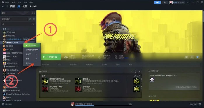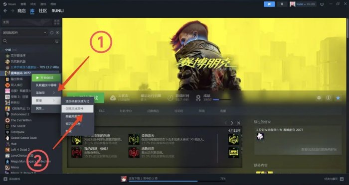 右键库里的赛博朋克2077,点击属性