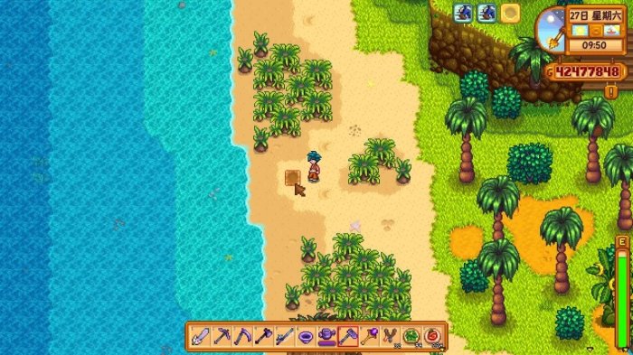 到姜岛农场(西部区域)后,往左边一直走,到海岸后会看到一个老奶奶的小屋,往上边走即可到图中区域,挖一下锄了地的地方即可获得一个金核桃和优质浮漂