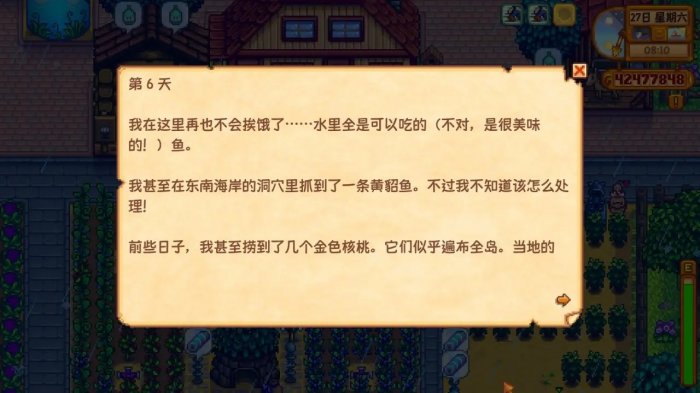 以上就是关于《星露谷物语》日记残页2详解的全部内容,希望能够有所帮助。更多星露谷物语相关攻略点击星露谷物语专区查看。