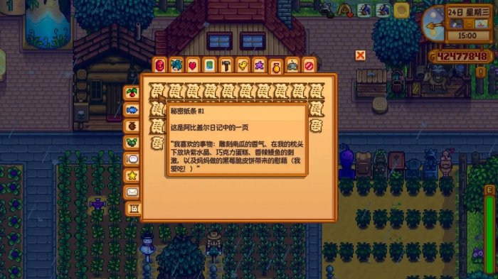 首先先说一下秘密纸条如何获取,内容在《星露谷物语》放大镜作用介绍,得到放大镜后几乎任何行为都会获得秘密纸条,包括砍树,锄地,杀怪,钓鱼等