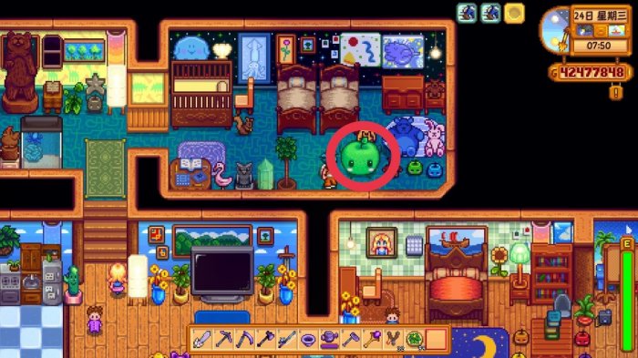 任意季节的最后一天中午12点整时,点一下游乐园上方的草丛,会送你一个大祝尼魔玩偶家具,只能触发一次