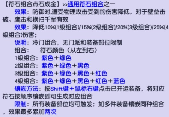 点石成金是一套非常冷门的符石组合,作用是防御状态下额外降低25%物理伤害,可以叠加2套。