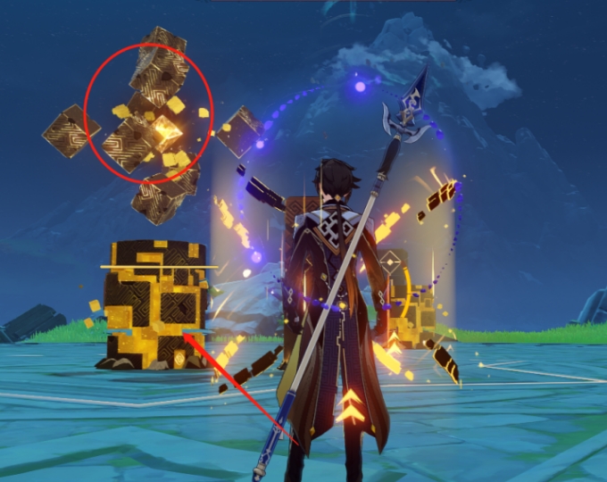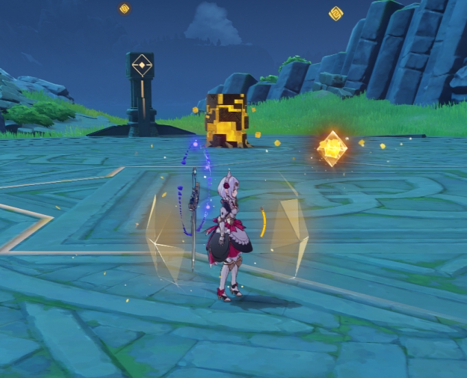 注意:看无相之岩在哪个柱子上面就去打哪个柱子,带个大剑角色,需要击落三次即可解锁成就。