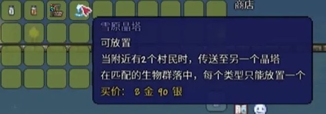 任何环境,只需要将军火商和护士安排居住在一起,那么军火商就会出售对应地形的晶塔,提供玩家购买;晶塔的价格为8金90银,记得攒钱喔;