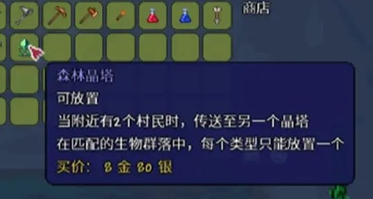 晶塔的特定,森林晶塔只能在森林环境使用,丛林晶塔只能在丛林环境使用,其它环境晶塔同理,洞穴晶塔只能在地下一定深度使用;