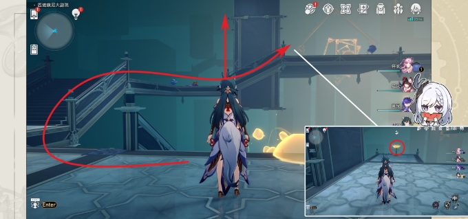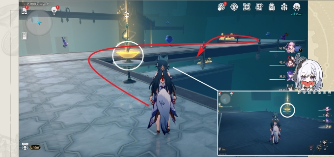 5.过来后,从南边的桥梁前往对面,先补充梦泡,再从楼梯边的柱子上去