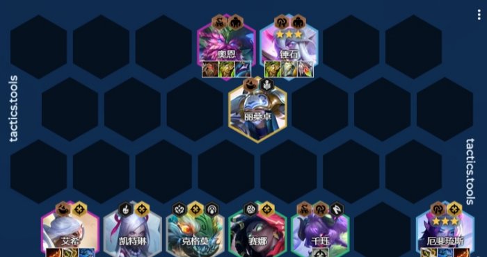 阵容组成:凯特琳、克罗莫、千珏、赛娜、锤石、厄斐琉斯、锤石、奥恩