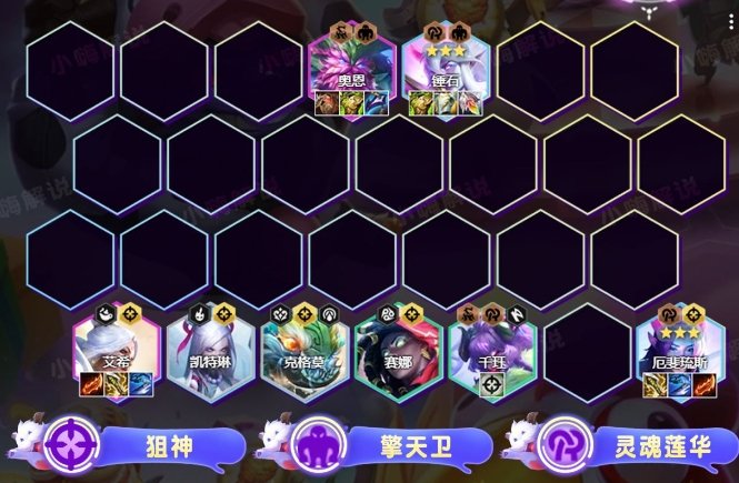 阵容羁绊:6狙神3灵魂莲华2擎天2永森