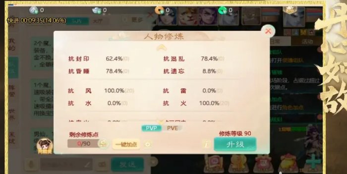人物抗性,5个号都这么调就行了。风火各抗100,物理200,天魔、青面各25。
