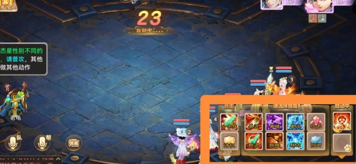 提前跟队友说一下,让他们操作慢一点,尽量在最后十秒,让他们在做相应动作,这样防止刷自动功绩得手忙脚乱。第一回合进入战斗之后,点自动,然后呢,点开法术框框,在这里面调整相应得动作就好。这就需要你得队友配合你了,让他们操作慢点,不然他们操作完,你还没有改好,读秒就结束了。
