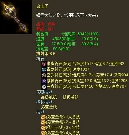 1.可以说是大话中唯一一个击落类灵宝,一高一低的天赋足以让它能在PK场上笑傲江湖