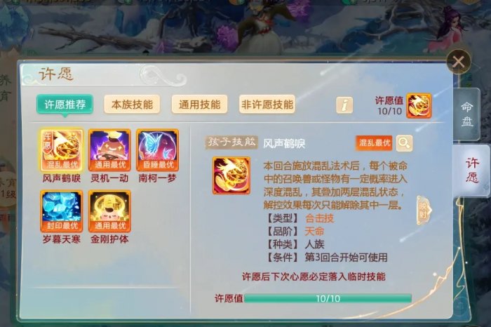 技能许愿模式,在这大家可以选择一个自己想要的技能,这个技能就会出现在临时技能栏里,满10次学习上之后,结局必给