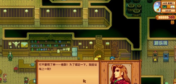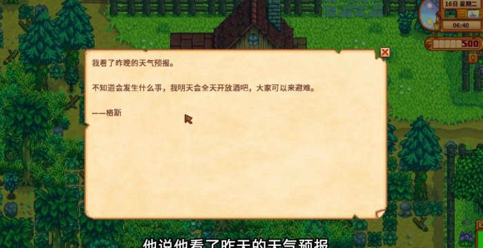 绿雨天气在我看来新鲜中夹杂着一丝普通,这一天植物的生命力会更加旺盛一些,除此之外酒吧里村民的对话也挺有意思的。
