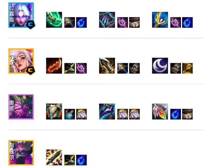 2-1拉4人口,过渡可以用3灵魂莲华2决斗。前期输出装给阿狸打工。