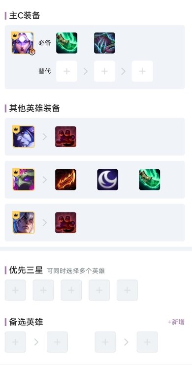 2.这阵容的主c既不是沙皇,也不是刀妹,而是拉露恩,他的装备优先做,你到后面就会发现哪怕沙皇刀妹来了,最高伤害也基本是拉露恩打的,还是个2星拉露恩。